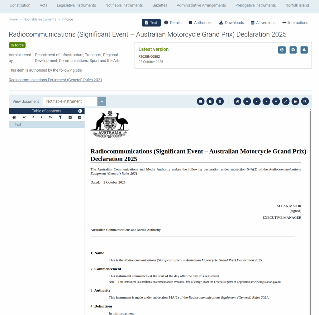 Well, rather than doing my work I went down the rabbit hole to find out, and it started with ACMA gaving a handy link to the declaration in the email: