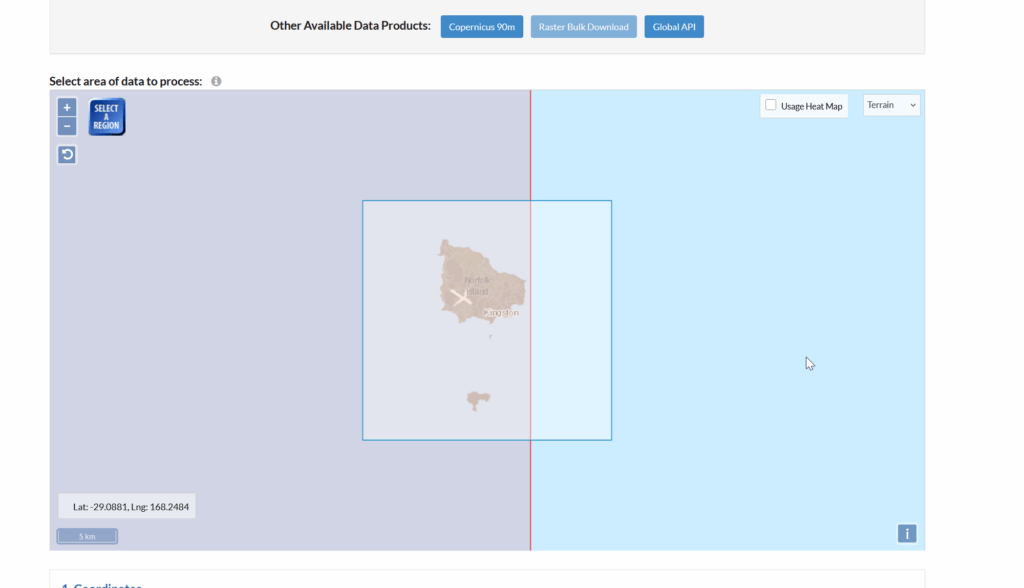 We visit the OpenTopography.org website, and select the target area for the data we want to download.