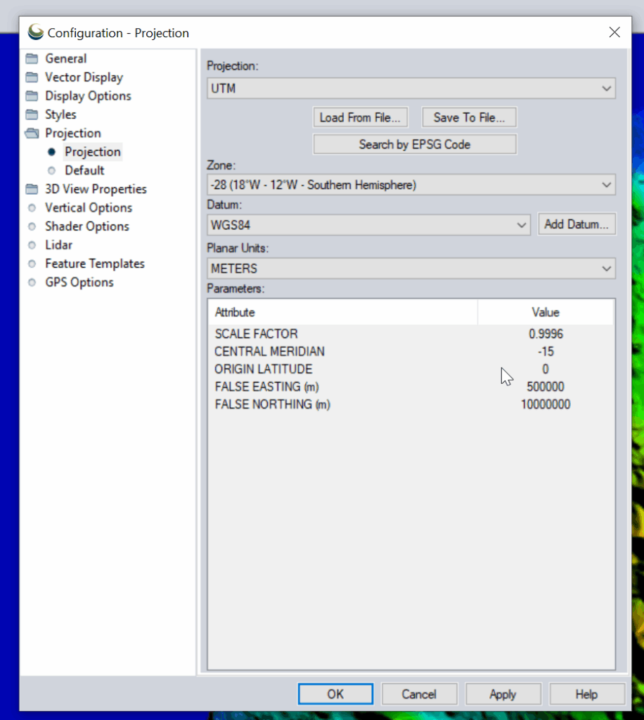 Then change the projection to UTM and use the UTM Zone Finder to find out what zone I needed.